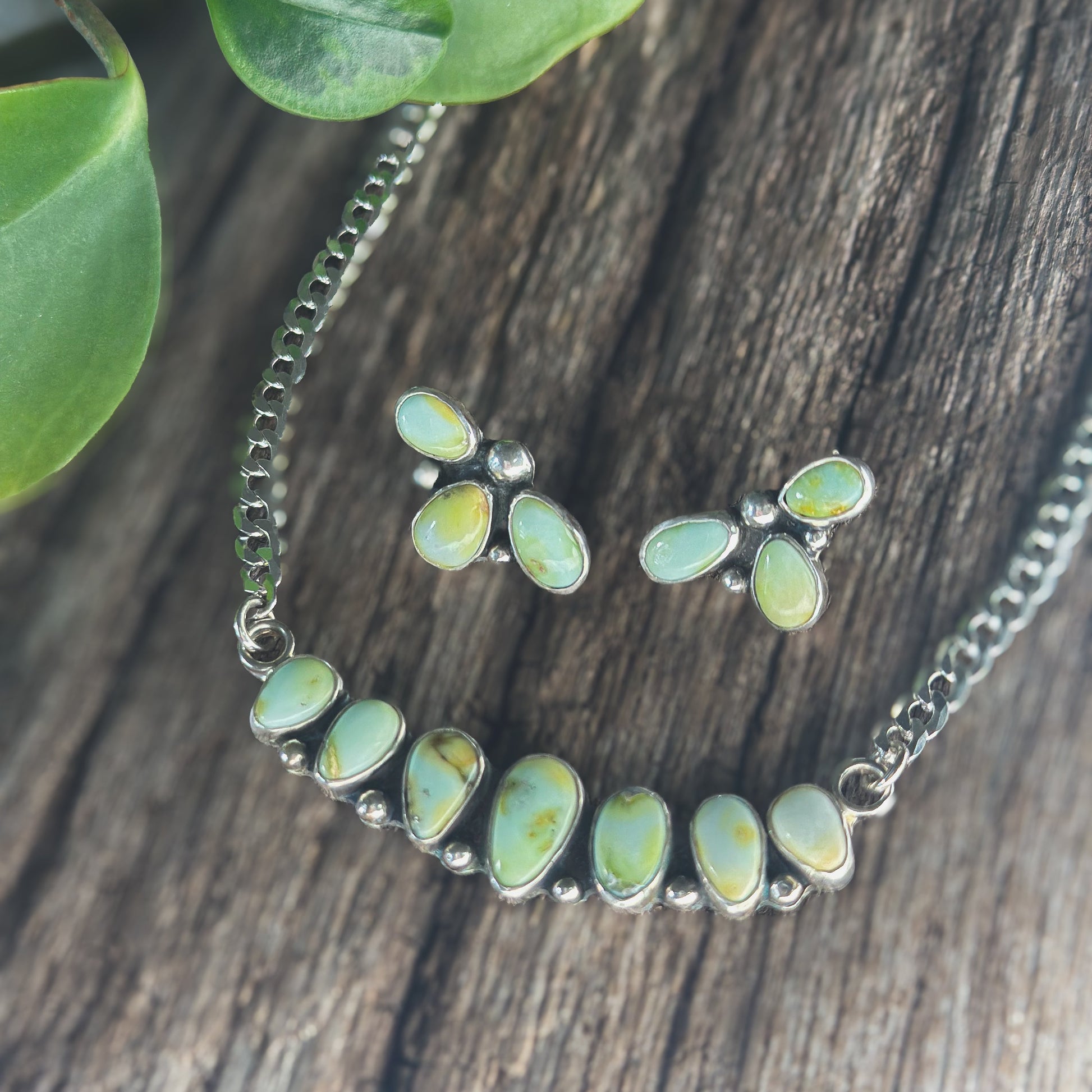 The bloom earring in shades of pale green Palomino Variscite. A cousin of Turquoise. Lightweight and fun to wear. Pair with the Palomino Mesa Necklace to complete the look!